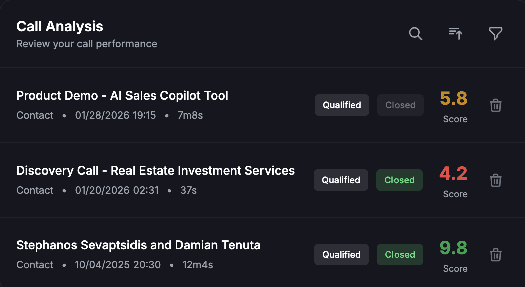 Get a complete breakdown of your call within seconds, key points discussed, objections raised, and outcomes captured automatically